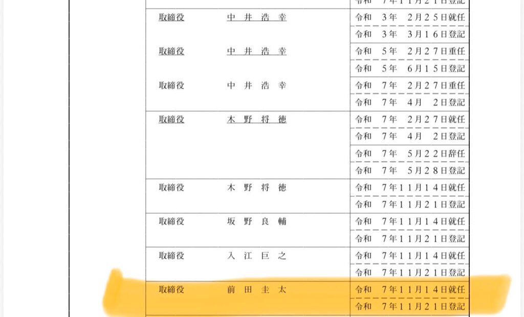 ※ 取締役 前田圭太(ヒカル)登記日11月21日